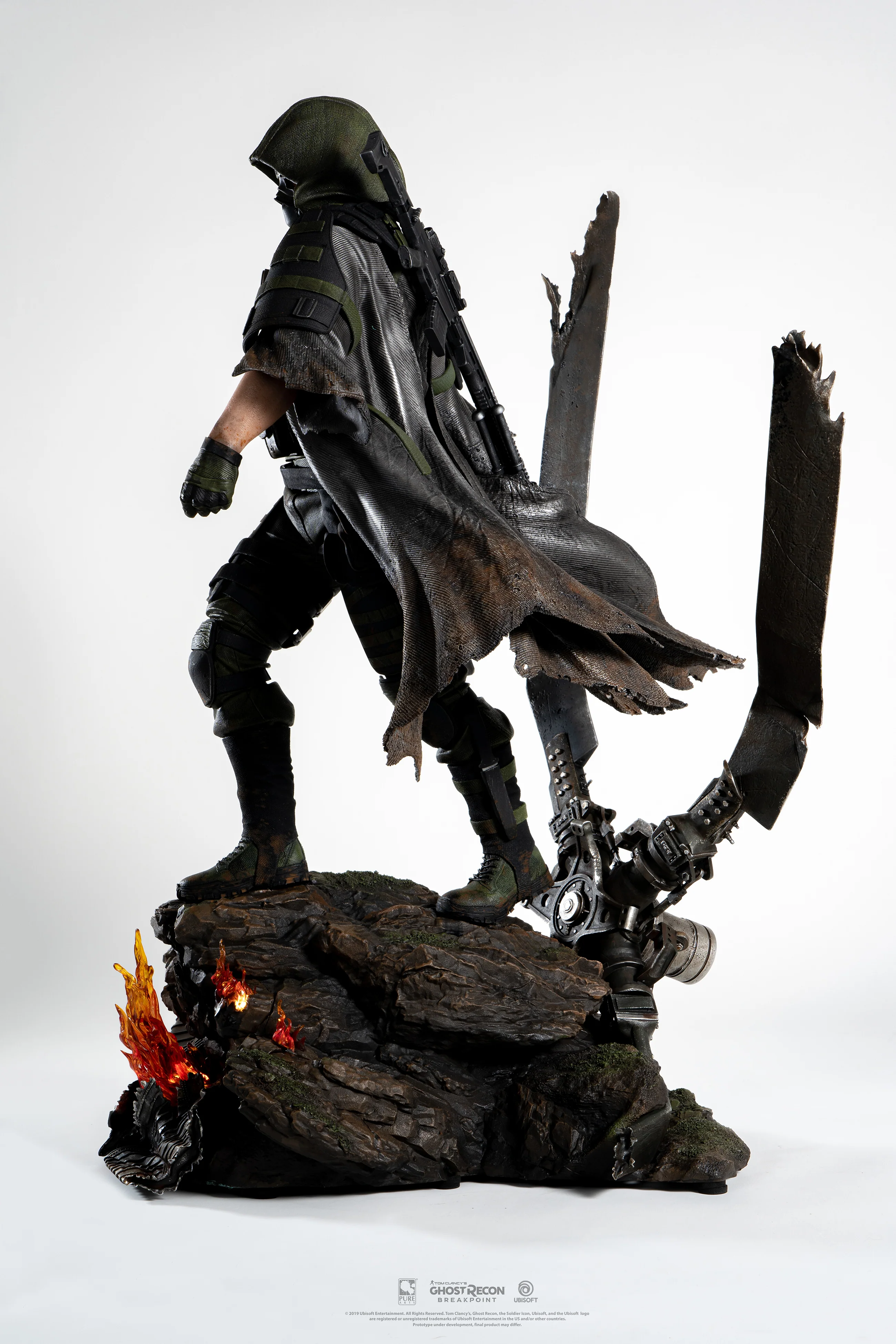 Made especially for the newly released Ghost Recon Breakpoint, Pure Arts has created this impressive 1/4 statue representing the former Ghost leader and the leader of the Wolves. Revel in all the realistic sculpting and hand-painted details of this masterpiece, all made in polyresin. This statue comes with interchangeable guns on his right hand, and a LED system included in the base to make the fire even more lifelike!