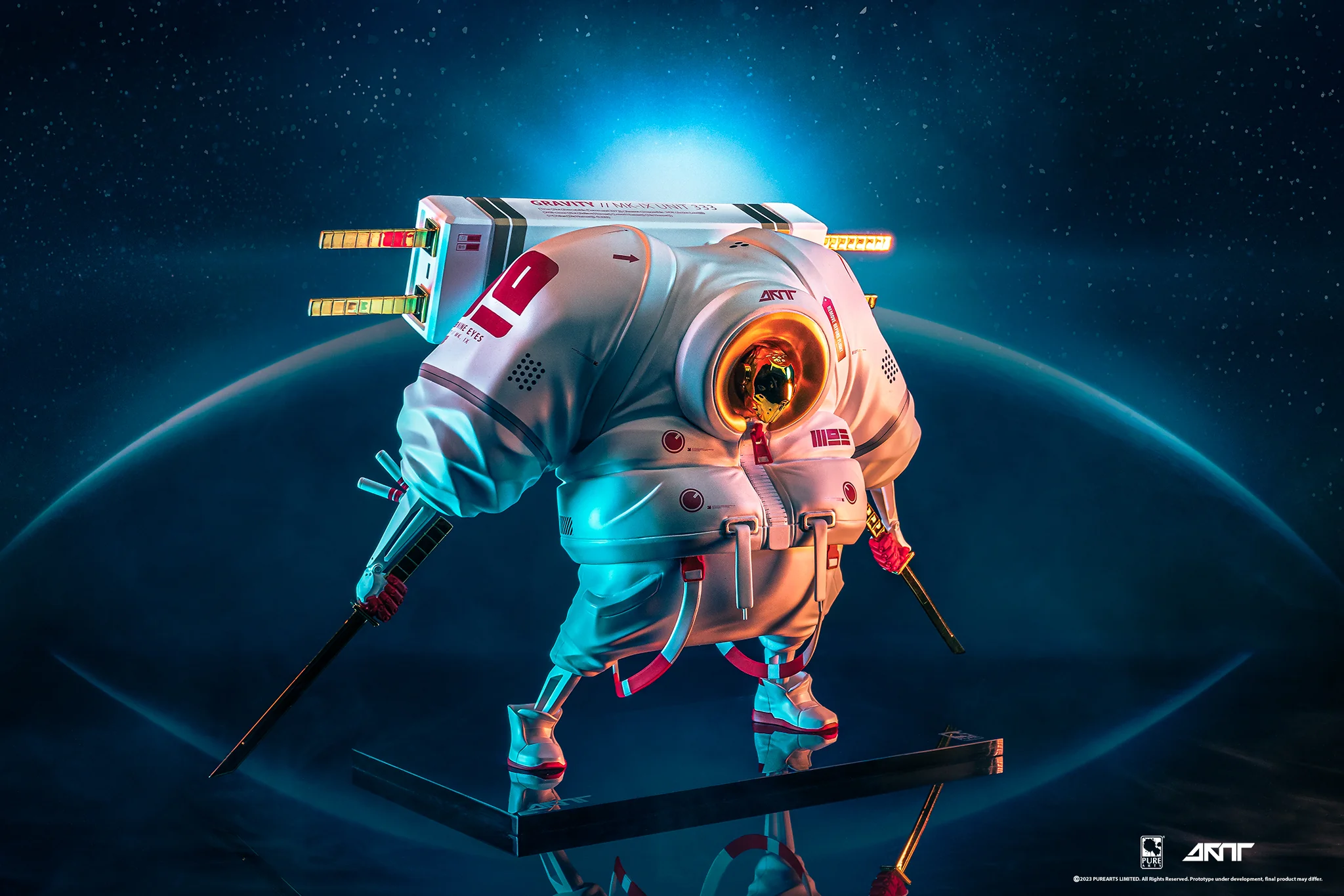 The now iconic Master 9 Eyes: Gravity designer toy has re-launched in 1/6 scale in time for DesignerCon 2023 in L.A.. Originally designed by Daytoner in 2020 in 1/12 scale, our epic Samurai in a cutting-edge spacesuit is now even bigger and better! Featuring the original white and red colorway with golden accents and including a removable reflective helmet and gold chromed weapons.